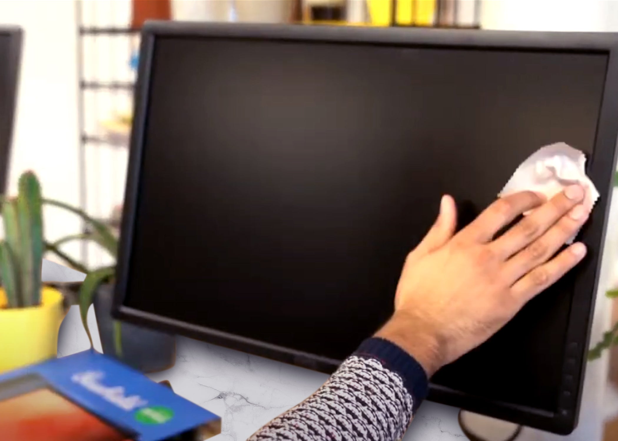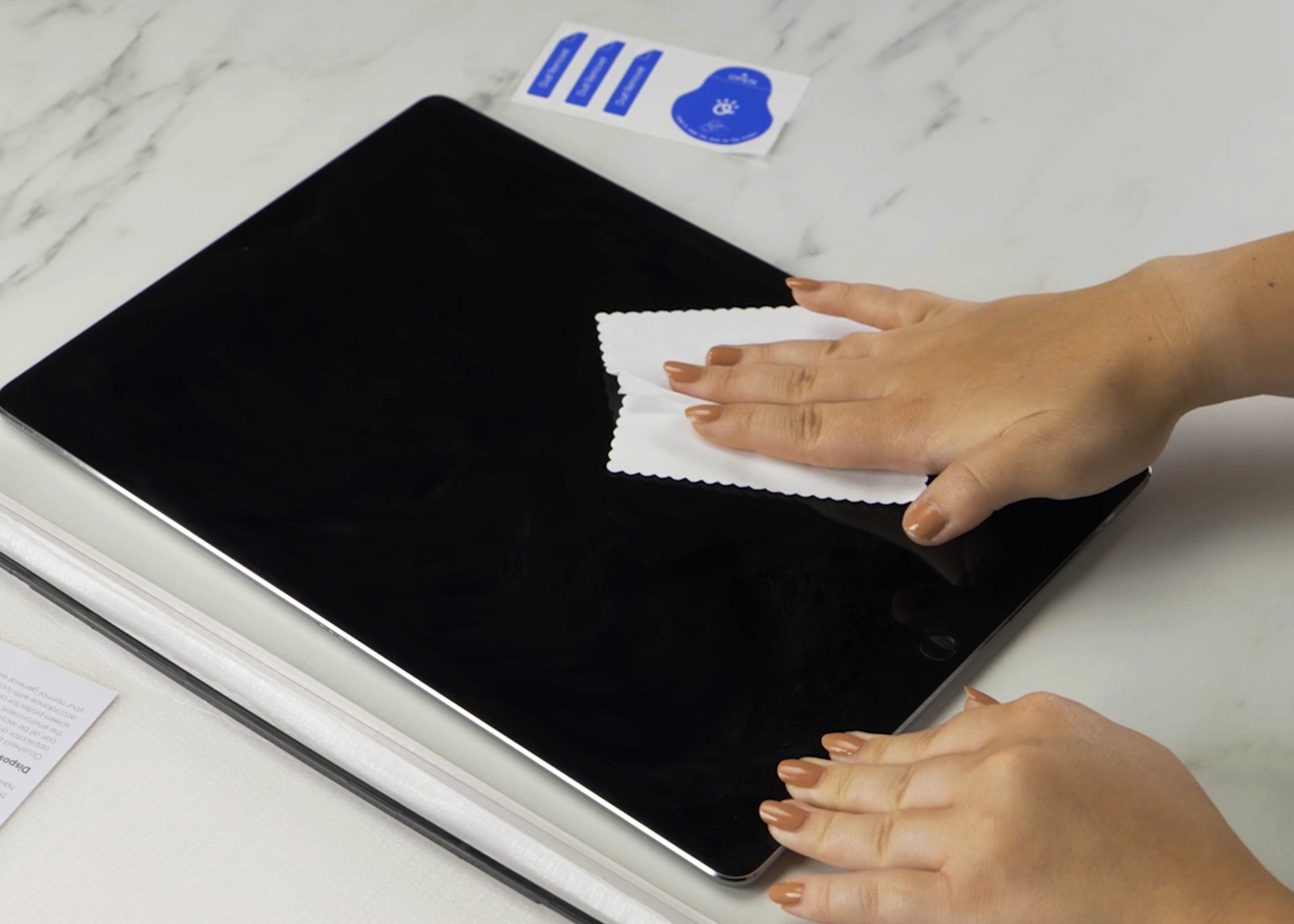 Use the cleaning wipe & microfiber cloth to clean & dry your screen.